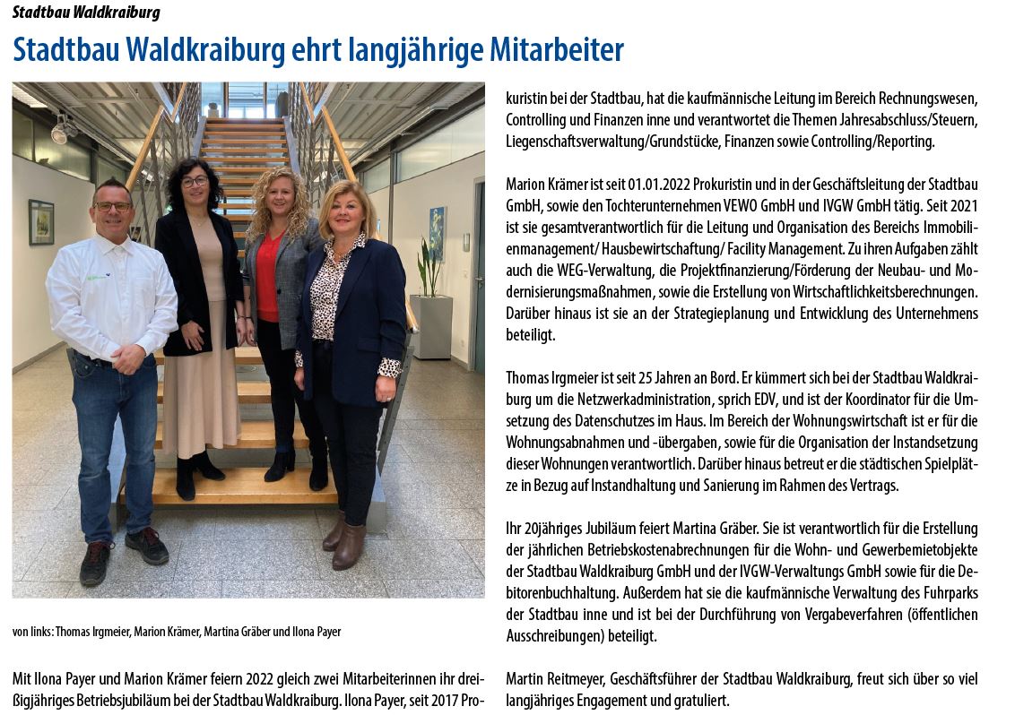 Stadtbau Waldkraiburg blickt auf eine Ära zurück und feiert Jubiläum